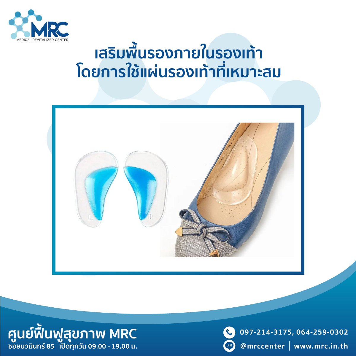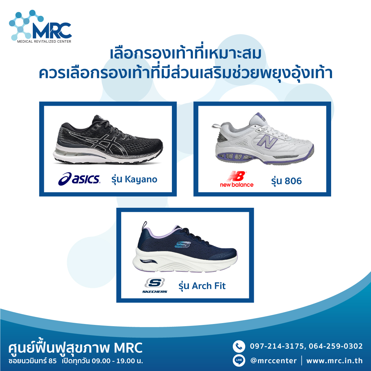 1. เลือกรองเท้าที่เหมาะสม ควรเลือกรองเท้าที่มีส่วนเสริมช่วยพยุงอุ้งเท้า รวมถึงรองเท้าควรมีวัสดุแข็งหุ้มทั้งด้านข้างและหลังเท้า