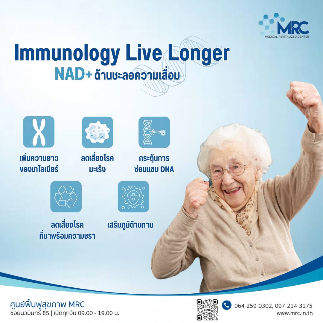 เนื่องจากความเสื่อม และความชราเป็นสาเหตุให้เกิดปัญหาสุขภาพ จะดีกว่าไหม ถ้าเราสามารถชะลอวัย หรือชะลอความเสื่อมด้วยการเติม NAD เข้าสู่ร่างกายโดยตรงผ่านทางหลอดเลือดดำได้โดยตรง ซึ่งถือว่าเป็นวิธีที่สามารถบำรุงและเพิ่มประสิทธิภาพของสมอง ฟื้นฟูระบบต่างๆ ของร่างกาย ส่งเสริมการทำงานของระบบภูมิคุ้มกัน รวมถึงสุขภาพในภาพรวมด้วย