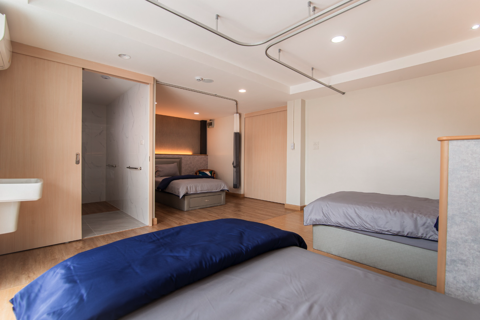 สิ่งอำนวยความสะดวก: เตียง 3.5 ฟุต/เตียงไฟฟ้า จำนวน 3 เตียง มีม่านกั้นเพื่อความเป็นส่วนตัว, ตู้เก็บเสื้อผ้าและของใช้